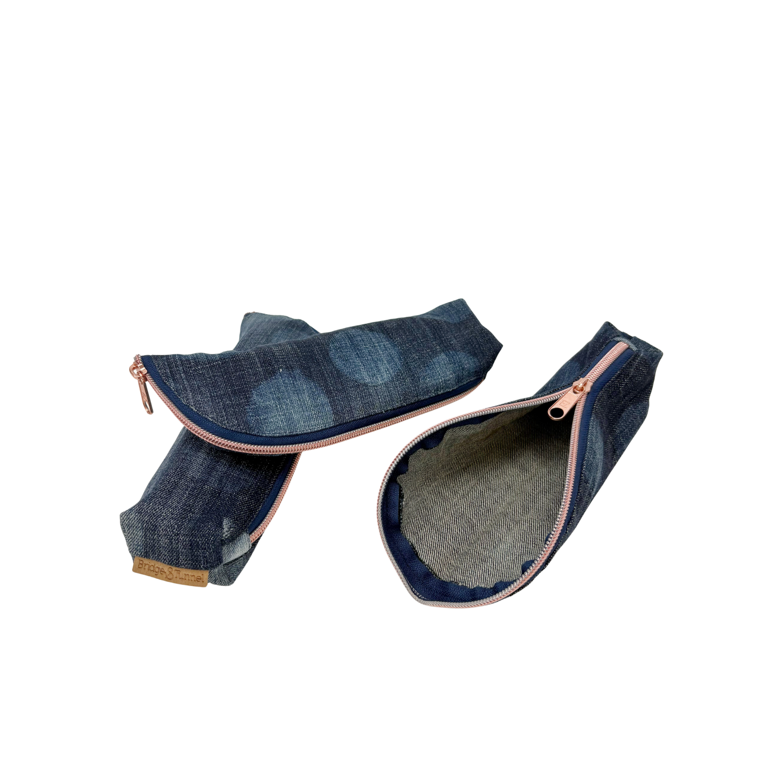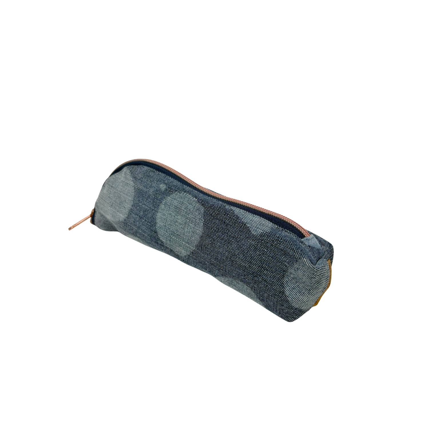 Bereit für einen echten Gute-Laune-Kick? Unsere Federmappe wird aus Jeansstoff mit auffälligem Punktemuster gefertigt und ist ein echter Hingucker. Der kupferfarbende Reißverschluss sorgt für extra Farbakzente, erhältlich in den blau Tönen hell, mittel und dunkel. Ideal für Stifte, Kleinigkeiten und alles, was in Schule oder Kita nicht fehlen darf.