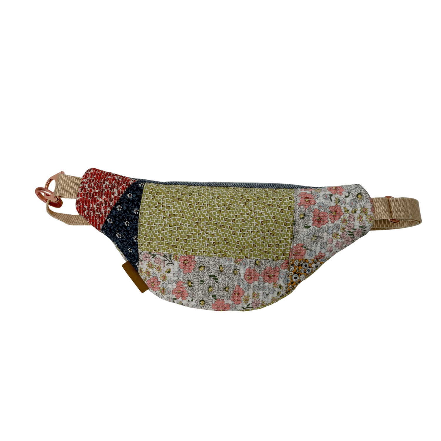 Gute Laune können wir! Unsere Hipbag Flower Power als Einzelstück mit einem kupferfarbenden Reißverschluss, anstatt einem blauen. Unsere Hipbag Flower Power hat ein Innenfach an der Vorderseite welches mit einem eleganten Reißverschluss verschlossen wird. Mit einem Gurtband lässt sie sich einfach und unkompliziert in der Größe verstellen.