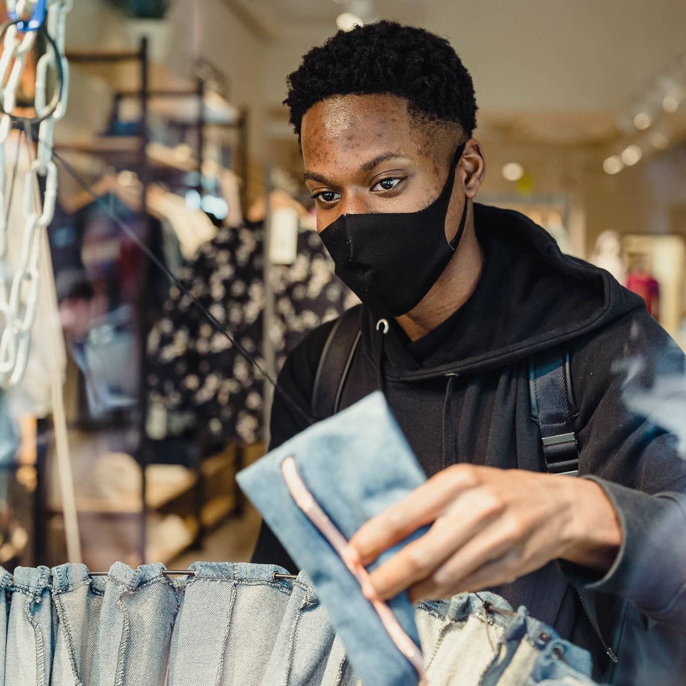 Nach einigem Abwägen hatten wir uns entschieden, ab Mitte April in die Fertigung von fairen und nachhaltigen Alltagsmasken einzusteigen. Das Problem an der Sache: Gummiband war weltweit ausverkauft. WELTWEIT! Wenn das kein Zeichen für die globalen Verflechtungen der Textilindustrie ist, was dann? Aber zum Glück war unser Team erfinderisch. Und konzipierte kurzerhand eine Maske mit Textilbändern. Alle Masken hatten wir, wie immer, aus Reststoffen gefertigt, die uns kurzerhand von tollen Menschen gespendet wurden. Auch Bettwäsche von Tchibo war dabei. Noch wichtiger aber: Wir hatten uns von Beginn an dafür entschieden, auch eine Spendenmaske anzubieten. Um die Menschen zu unterstützen, die sich keine Alltagsmaske leisten können, sie aber genauso dringend wie wir alle benötigen. Mithilfe der Unterstützung von EUCH ALLEN konnten wir im Mai dann jede Menge Spendenmasken verteilen. U.a. an unsere Freunde von Hanseatic Help, die seit 2015 Geflüchtete, Obdachlose und andere Mitmenschen kostenlos mit Kleidung und anderen Artikeln des täglichen Bedarfs unterstützen.