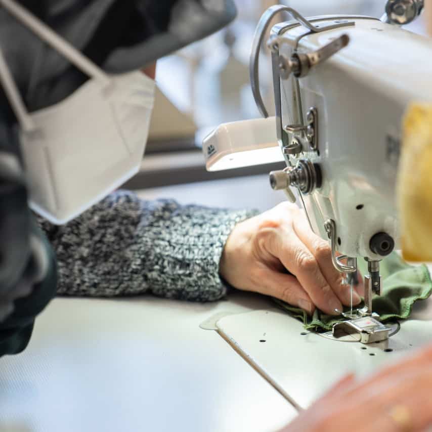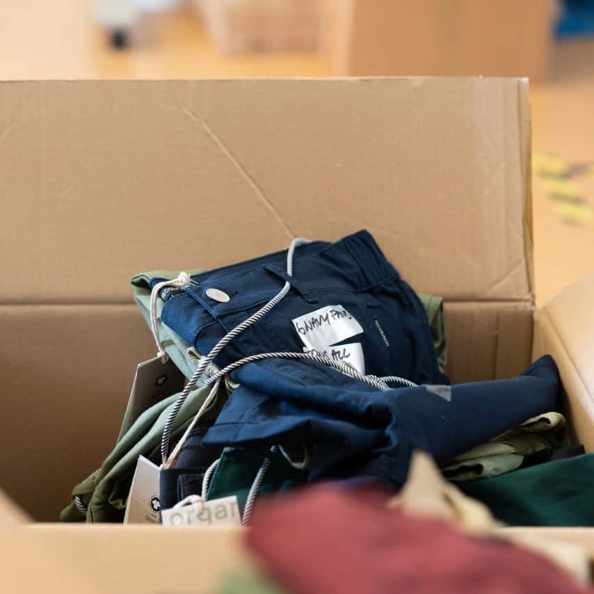Jan: In normalen also pre-Covid Zeiten haben wir 2-4 Lagerverkäufe im Jahr gemacht. Einen anderen großen Teil spenden wir jedes Jahr an Hanseatic Help und geben z.B. Reststoffe an Kitas weiter. Und dann machen wir so tolle Upcycling Projekte, wie dieses hier mit euch.